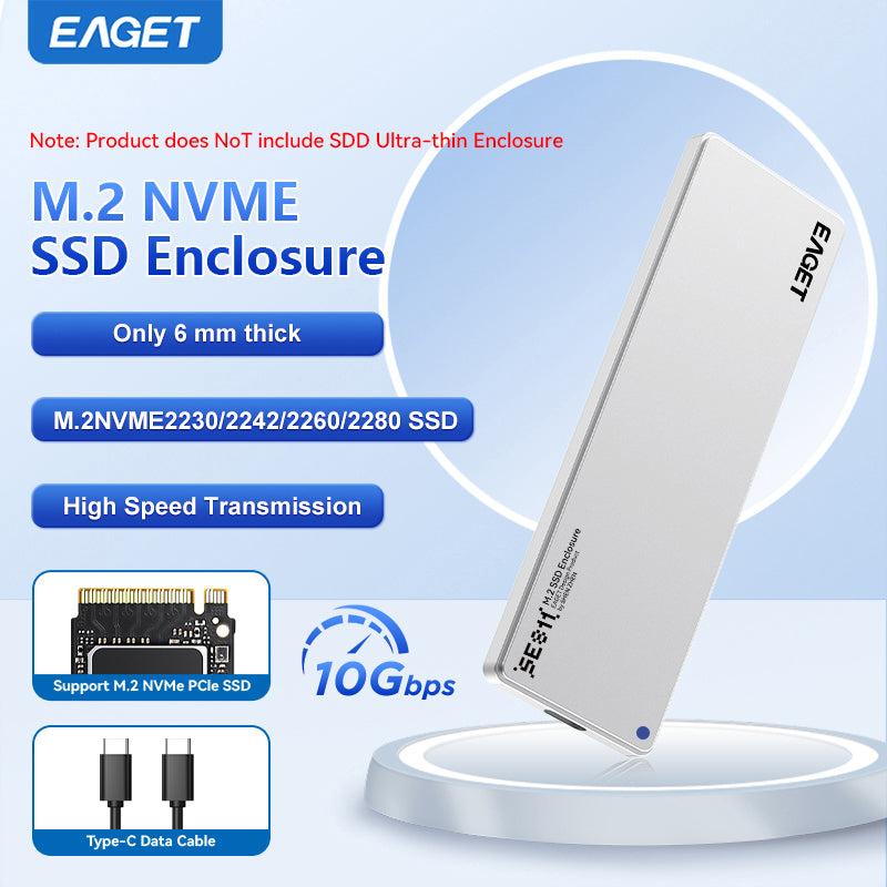 Ultra-thin SSD Enclosure | 6mm Thick, NVMe M.2 Adapter, Supports NVMe Interface Only, USB 3.2 Gen 2 (10 Gbps), Suitable for 2230/ 2242/ 2260/ 2280 Form Factor SSDs, Aluminum Alloy, without SSD