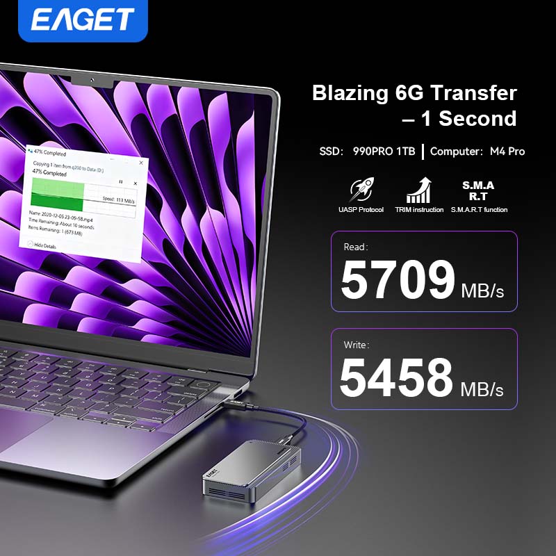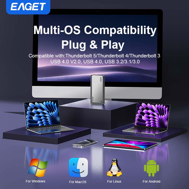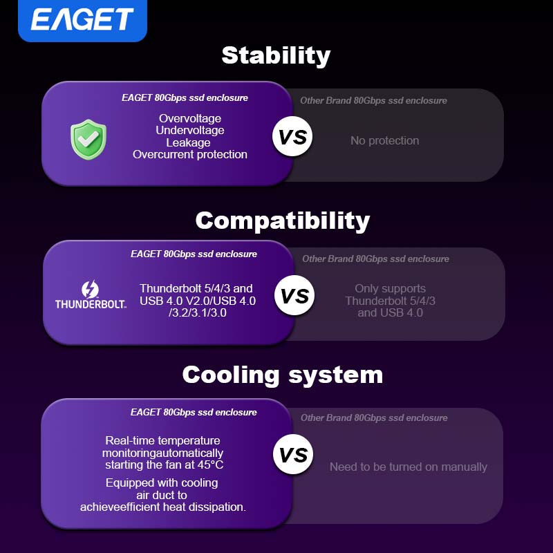 M.2 NVMe SSD 80Gbps Enclosure, Intel JHL9480, Three-Chip Solution, Intelligent Cooling System, Compatible with Thunderbolt 5/ 4/ 3 and USB 4.0 V2.0/ USB 4.0/ 3.2/ 3.1/ 3.0